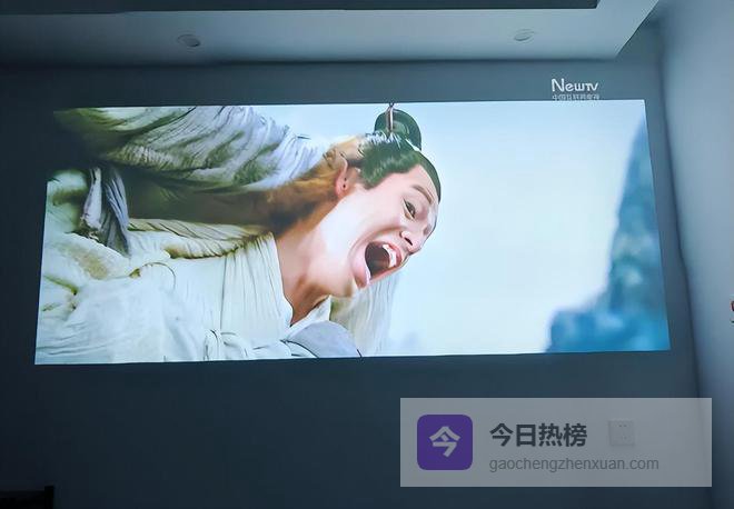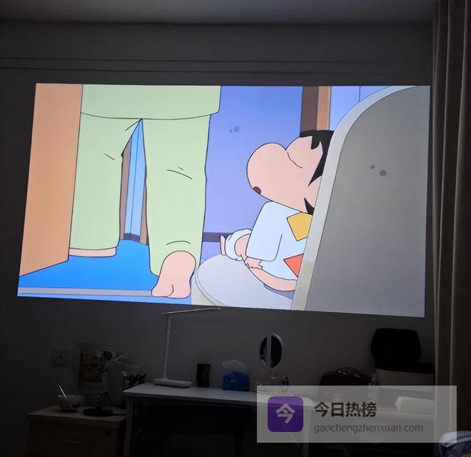 它只需要一面大白墙,就能实现大屏幕观影,实现一百寸的大画面,就像是电影院一样。