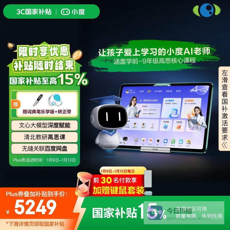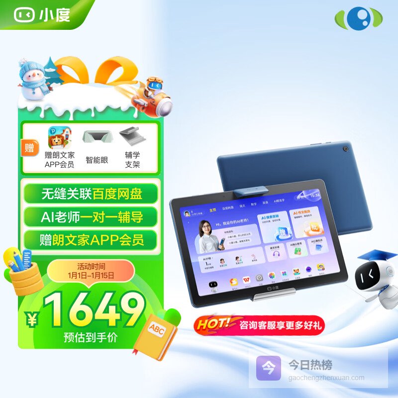 小度学习机G16Pro(6 256GB)小学到高中学生平板电脑 AI家教机 文心大模型 护眼 郎文家 家长管控¥