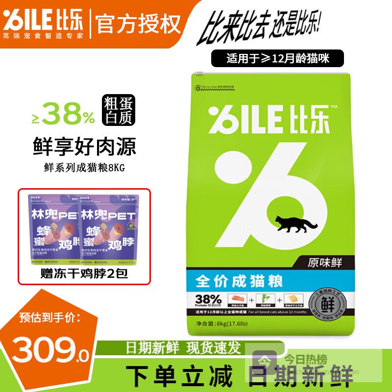 这款猫粮的确是配比合理、营养丰富,含有高比例的蛋白质,粗蛋白≥38%,能满足猫咪的成长和日常所需,实际效果挺不错的。宝贝吃了之后精神状态也更好,身体更结实一些。