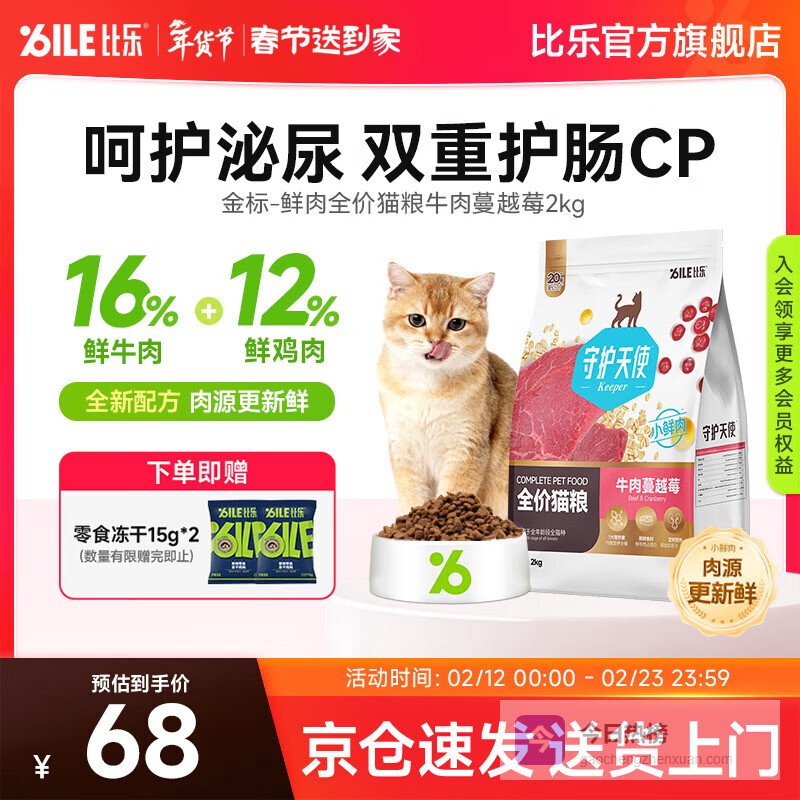 比乐猫粮 三文鱼成猫幼猫通用粮 牛肉蔓越莓英短布偶蓝猫全阶段猫粮 牛肉蔓越莓猫粮4斤¥