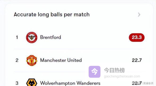 1,长传冲吊,布伦特福德这个球队脚下技术是非常粗糙的,但没关系,球队的出球并不依赖短传,而是以高中锋蒂亚戈为核心,直接打长传,场均长传23.3次,排名英超第一,可谓是扬长避短了。