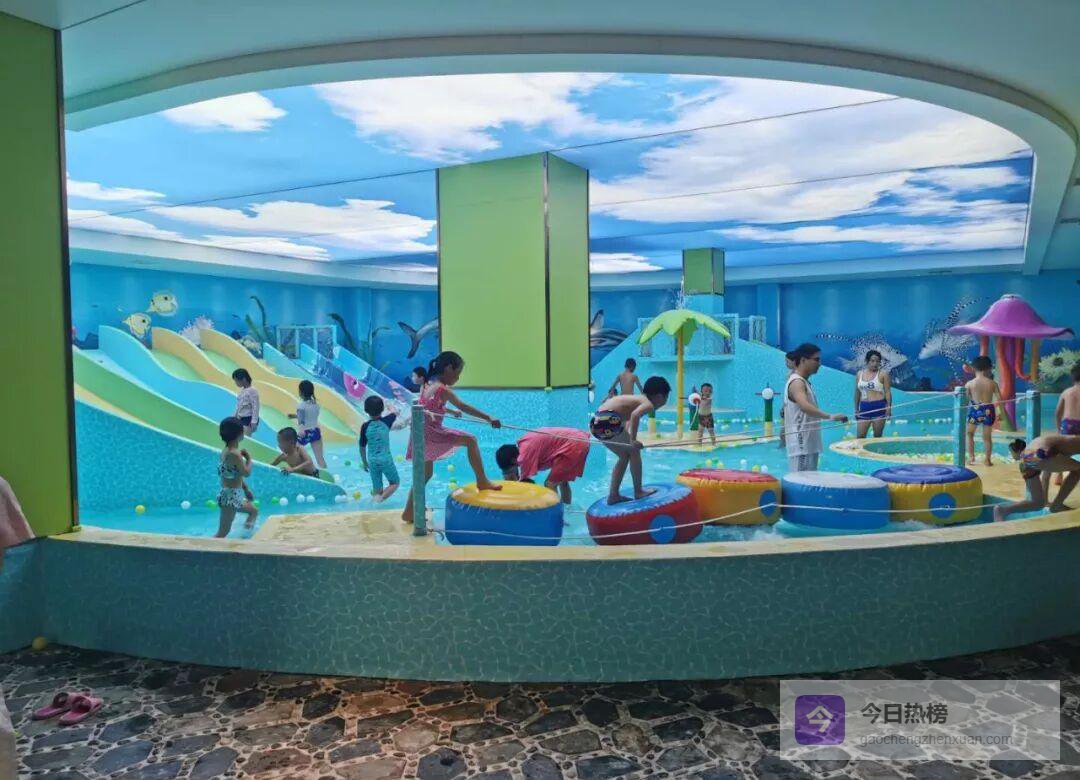 整层挑高6米,恒温36℃-40℃的泉水每天凌晨3点全部换新,PH值、氯含量双双达标,大人小孩同池也不怕。
