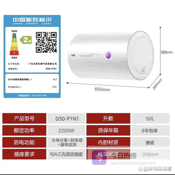 万家乐40/50/60/80L电热水器加长防电墙高温抑菌P1N1机械款L2G1出水断电 50L 2200W 机械款/加长防电墙二级¥