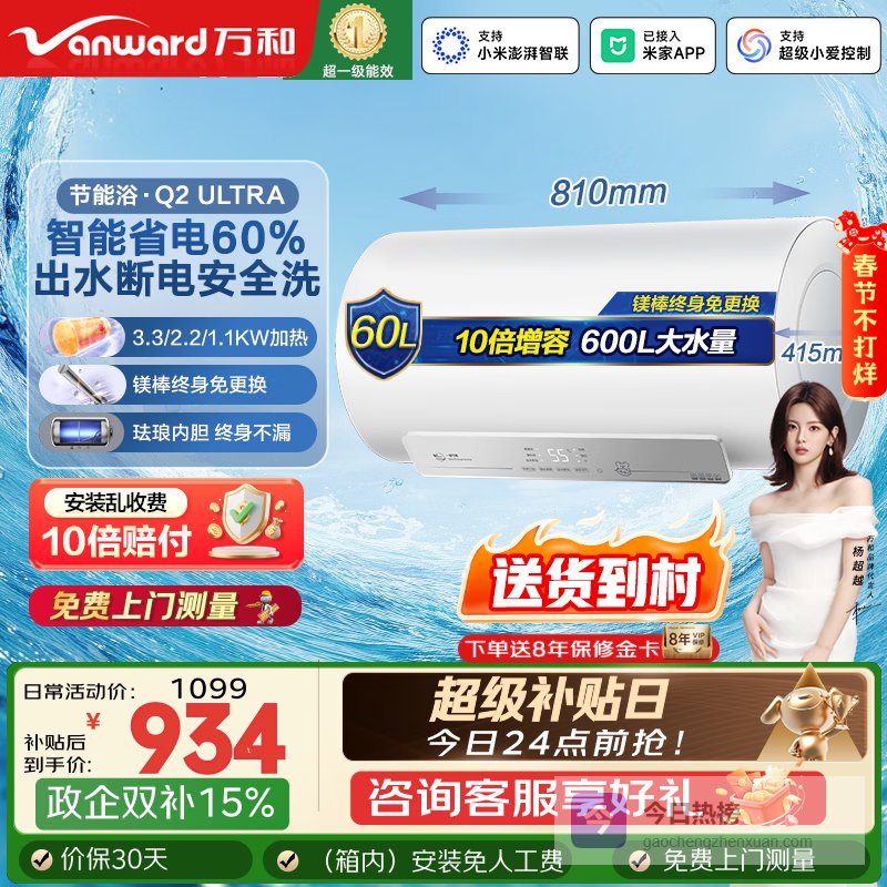 万和【国家补贴】电热水器一级能效3300W速热出水断电镁棒免换Q8D/Q2升级款以旧换新热水器上门安装 60L 3300W 出水断电|免换镁棒|Q2Ultra 免换镁棒¥