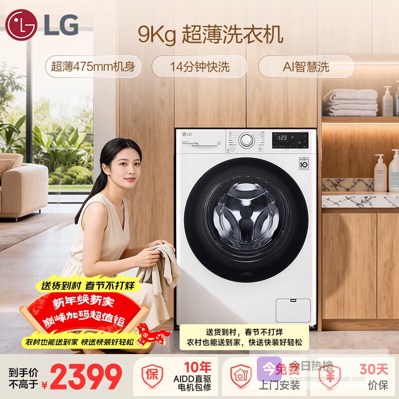 推荐入手:LG超薄9KG滚筒洗衣机 FCY90N2W