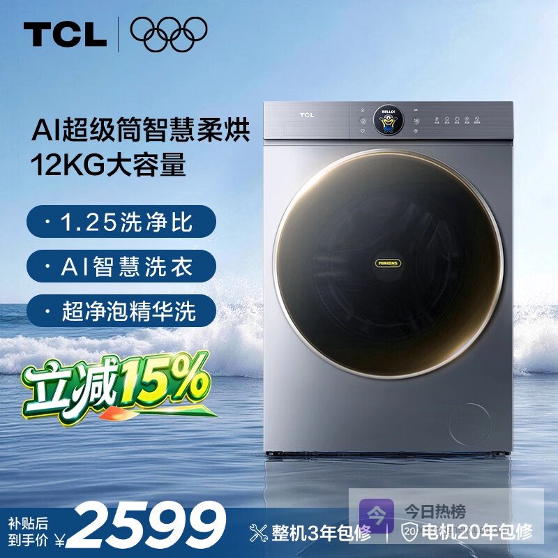推荐入手:TCL小黄人AI洗烘滚筒洗衣机T7R MAX 12公斤