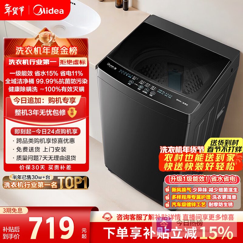 推荐入手:美的波轮全自动洗衣机MB10V37T 10kg
