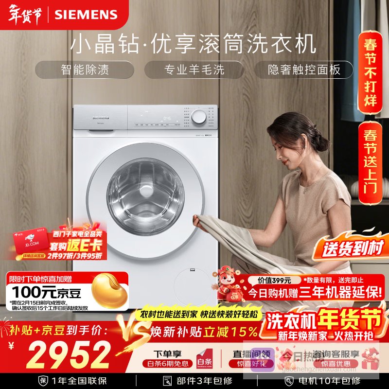 推荐入手:西门子小晶钻10公斤全自动滚筒洗衣机