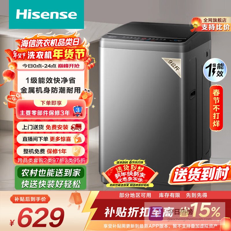 推荐入手:海信全自动波轮洗衣机9公斤HB90DC30