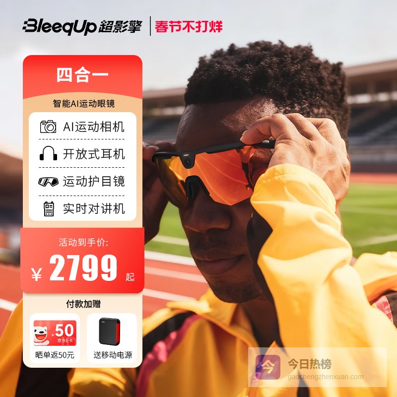 商品推荐:BleeqUp超影Ranger & NSVE联名智能运动眼镜专为动态场景打磨的眼镜,镜腿前端集成旗舰级影像模组,1600万像素解析力足够裁切二次构图,120°视野覆盖更大运动场景;采用索尼克级陀螺仪防抖系统,跑跳中画面稳如手持云台,追拍孩子奔跑、骑行过弯都流畅不晃;蓝牙耳机组件独立续航,支持IPX5防水,出汗淋雨都不怕;镜架用航空级TR90材质,柔韧抗摔,剧烈运动也不易松脱。