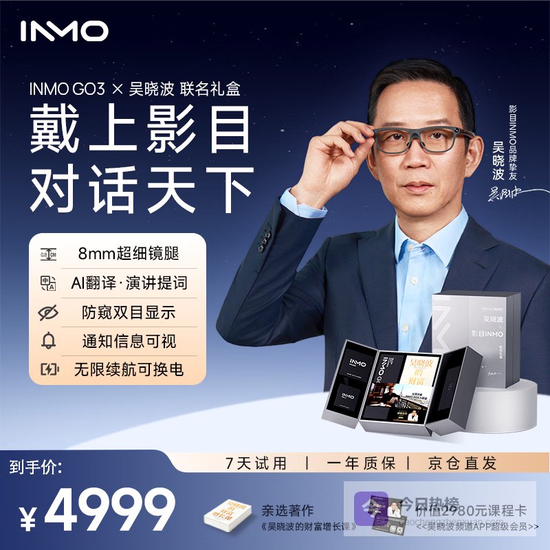 INMOGO 3 吴晓波L码戒指联名礼盒 AI智能眼镜演讲提词器翻译眼镜 男生惊喜生日礼物 年会新年礼物¥