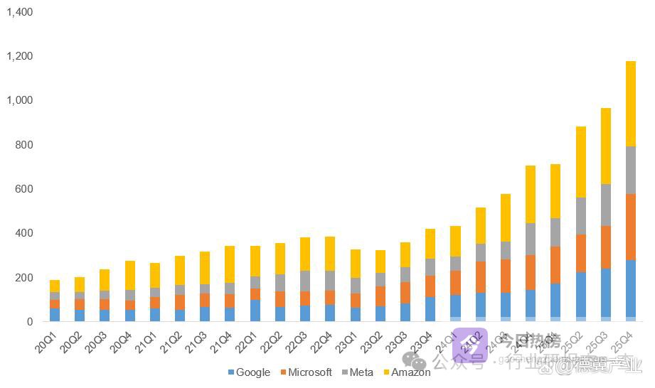 真正的“氪金玩家”浮出水面——北美四大云厂商(谷歌、微软、Meta、亚马逊)。