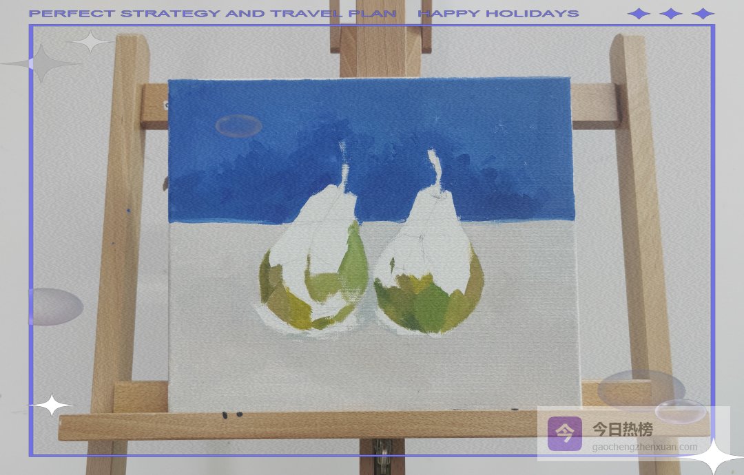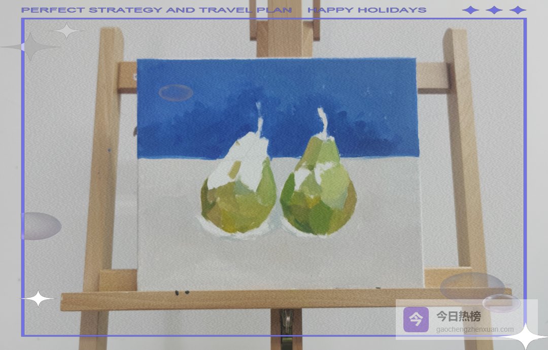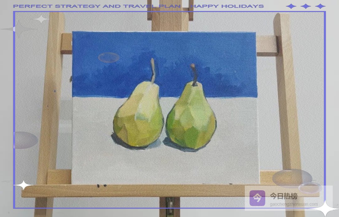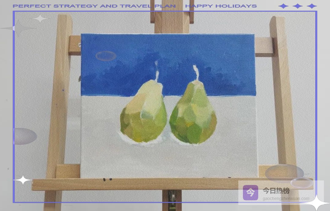 至此,一对鲜活的水灵大梨就安静躺在画布上,连灯光打上去都能看见细腻的果霜。直接画法不追求一步到位,大胆下笔、层层叠加、随时后退观察,你也能把静物室搬进客厅。