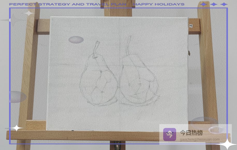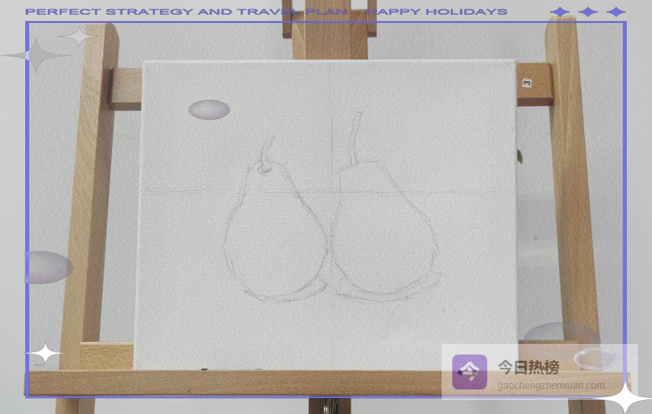 用铅笔轻轻拉出横向与纵向参考线,把画面切成等比例小格,梨的中心点落在交叉处,构图就稳了。