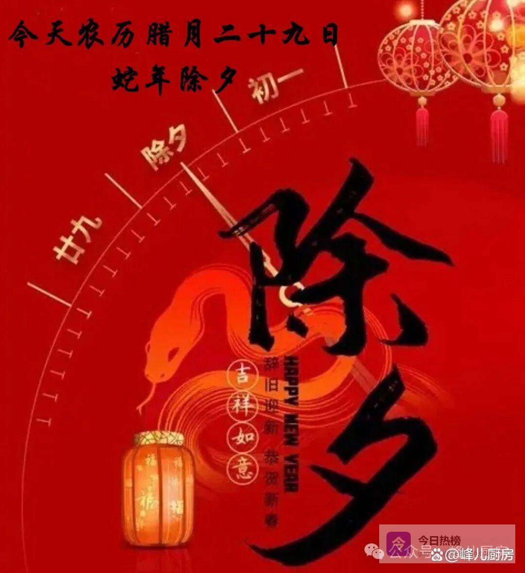 今天农历腊月二十九日,也是农历蛇年除夕,除夕作为农历腊月的最后一天,又称岁除、除夜,是蛇年与马年衔接的关键节点,核心寓意为“辞旧驱邪、团圆祈福”。蛇在传统文化中象征智慧、灵动与重生,蛇年除夕的习俗既延续了华夏千年年俗的精髓,又暗藏着专属蛇年的吉祥期许,承载着国人对旧岁的告别与对新年的向往,每一项习俗都藏着代代相传的生活智慧与家国情怀。今天农历蛇年除夕,记住“吃二菜二饭,做二事”习俗,幸福快乐辞蛇年!