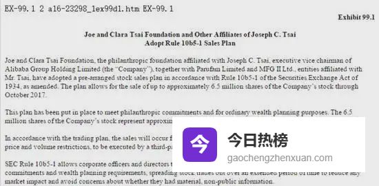 10月前,蔡崇信将抛售650万股阿里巴巴股票,按当时87.81美元/股的市价计算,5.7亿美元(约39亿元人民币)将瞬间易主。SEC文件显示,这笔交易属于“10b5-1”预设卖单,意味着套现早已在限售期解除前排定,与短期市场波动无关。公告一出,外界把目光再次投向这位“马云最信任的左膀右臂”——究竟是什么力量,让他在20年前放弃70万美元年薪,押注一家尚未盈利的杭州小公司?