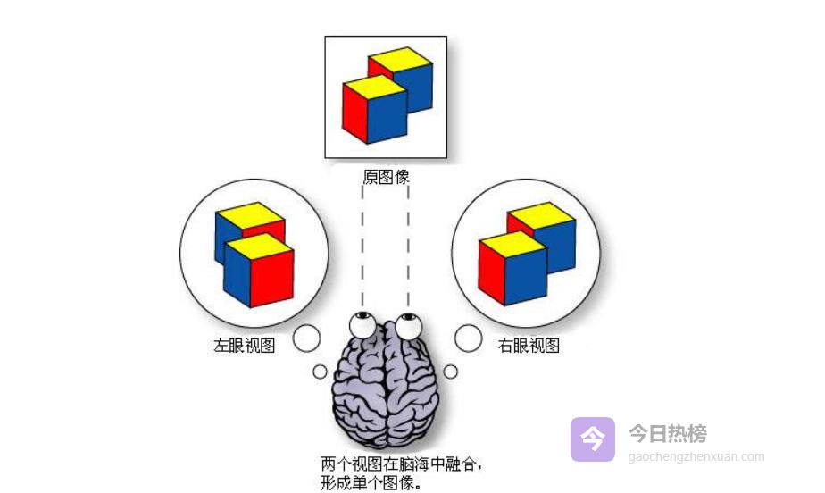 两只眼睛同时看物体时,视网膜上得到的是两幅略有差异的二维照片: