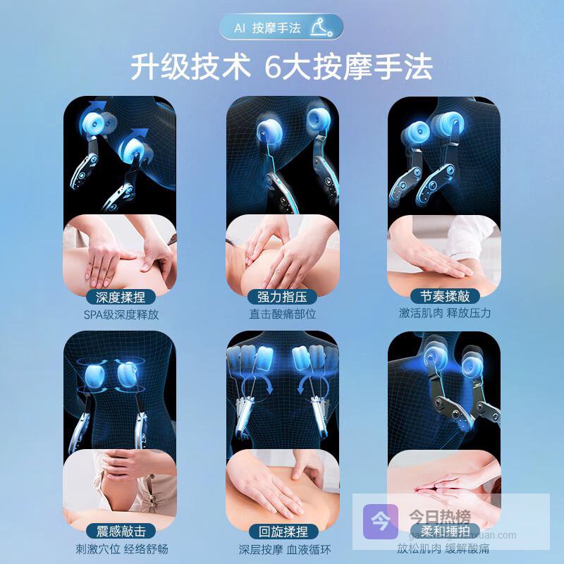1️⃣高科技按摩体验:结合先进的3D智能技术,提供多种按摩手法,能够深度缓解肌肉紧张,让身心得到全面放松。这种创新设计适合不同用户需求,为每一位享受者带来独特的按摩体验。