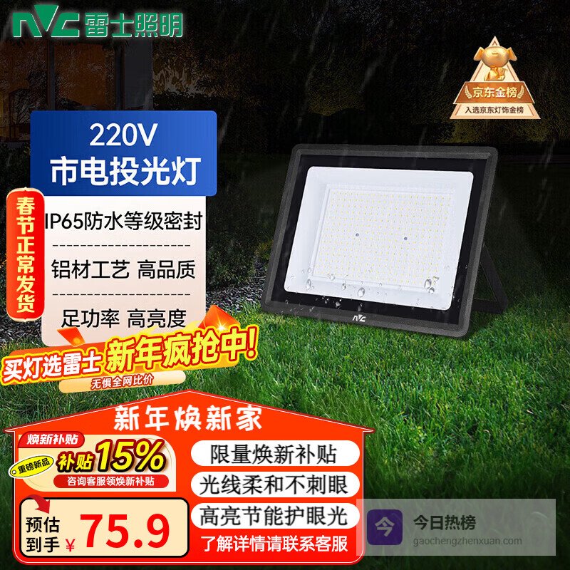 雷士(NVC)太阳能灯户外路灯庭院灯室外感应防水灯光控感应家用庭院室外投光 100W+白光+照约50㎡¥