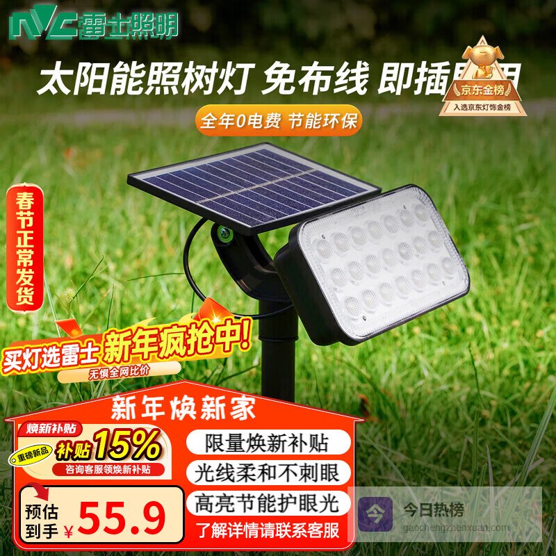 雷士(NVC)太阳能灯户外路灯庭院灯室外感应防水灯光控感应家用庭院室外投光 升级款草坪灯-按键变光¥