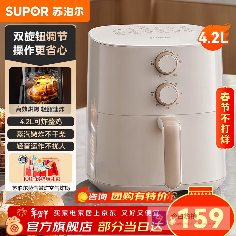 苏泊尔(SUPOR)空气炸锅 家用小型电炸锅 双旋钮控温调时 多功能烤红薯烤串一体机 轻音运作蒸气嫩炸 【轻音运作】 4.2L¥