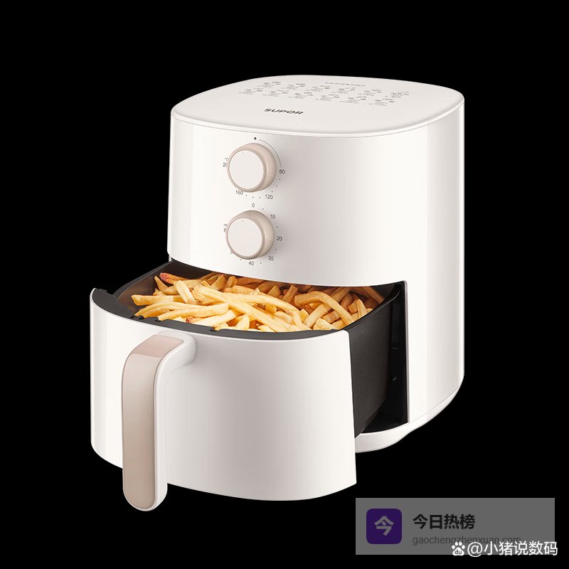 第2款:苏泊尔KJ42D610蒸汽嫩炸技术:这空气炸锅用了个新招,叫蒸汽嫩炸,确实挺特别!简单说就是炸的时候会喷点水蒸气,在食物外面裹一层水膜。这样炸出来的东西,外面是酥的,里面还挺嫩,不会干巴巴的,口感还不错。