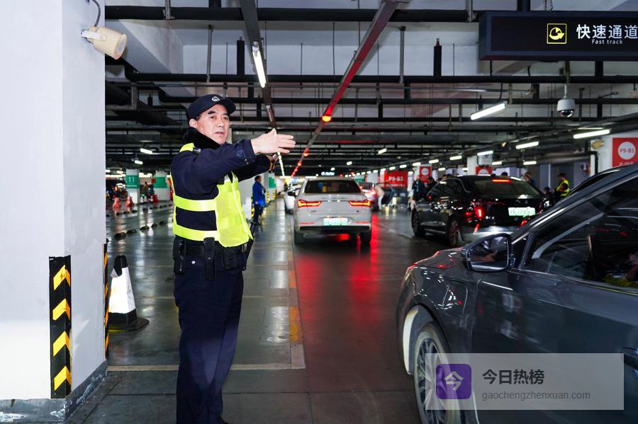 P9、P10停车库是虹桥枢纽的交通“咽喉”。今年除夕,虹桥枢纽预计到发旅客22.3万人次,警方启动“一点一方案”,在“大小循环”“高地联动”等成熟机制上,会同枢纽管理方在站内和车库增设了更醒目的引导标识和巨幅灯箱,方便旅客更快找到上客点。