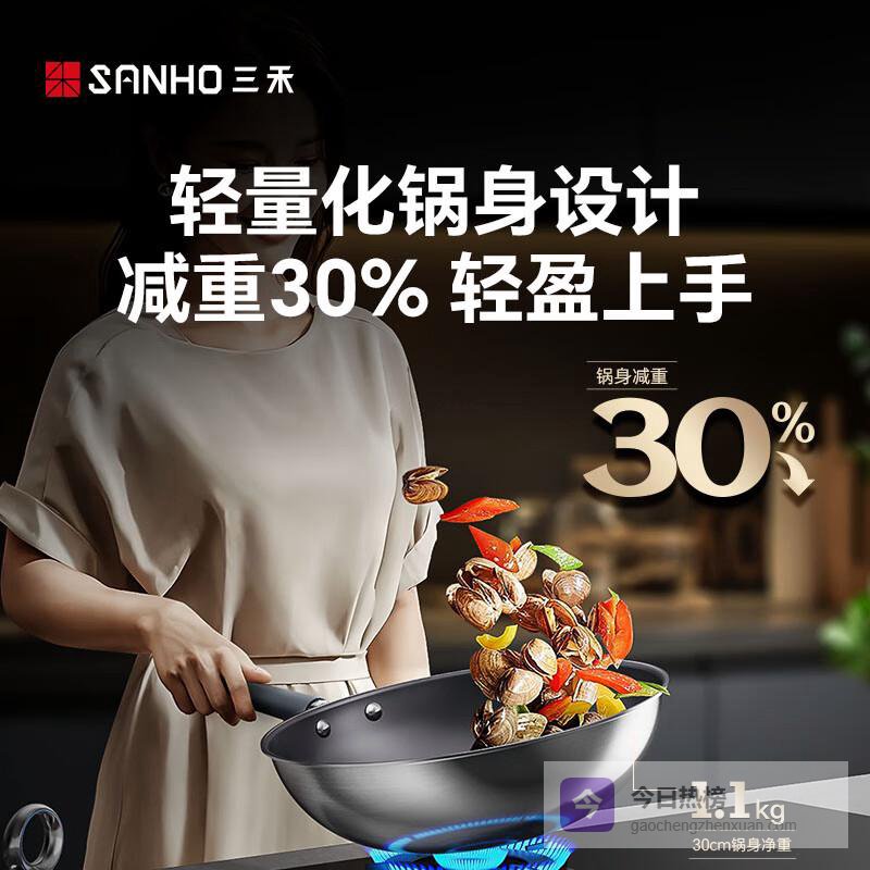 【京东自营】三禾0涂层炒锅无涂层不粘锅钛钢不锈钢电磁炉通用炒菜锅30cmLC30S16¥