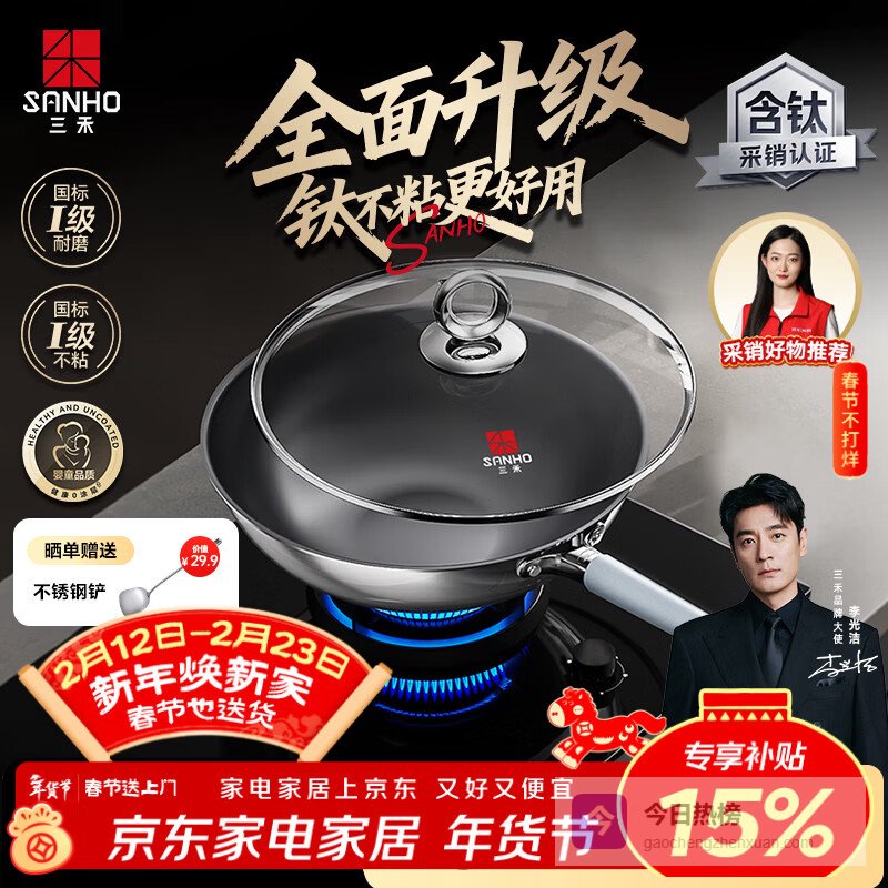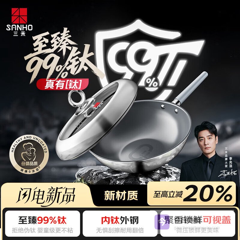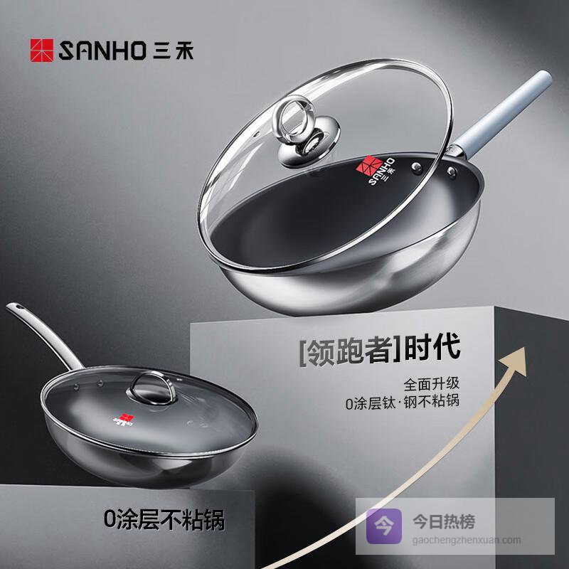 【京东自营】三禾99钛0涂层炒锅无涂层不粘锅钛合金炒菜锅电磁炉燃气通用32cm¥