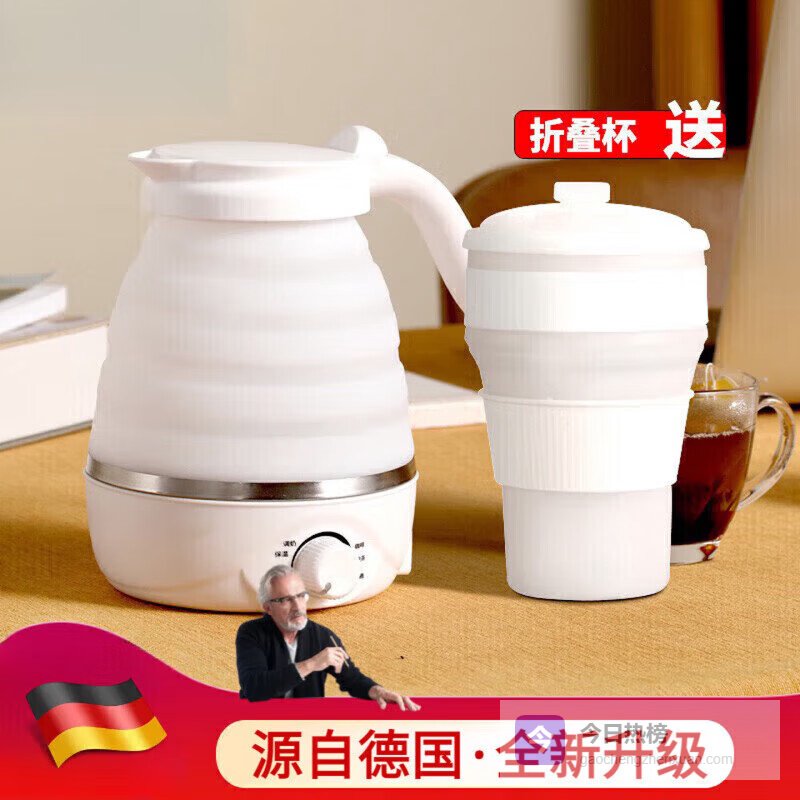 点评:这款电热水壶最大的亮点就是可以折叠设计,携带特别方便,折叠后体积就像一个小本子,轻巧又节省空间,非常适合出门旅行或者出差带着用。它还配备了316L食品级不锈钢内胆,耐腐蚀又安全,用着更放心,喝水不用担心材料问题。