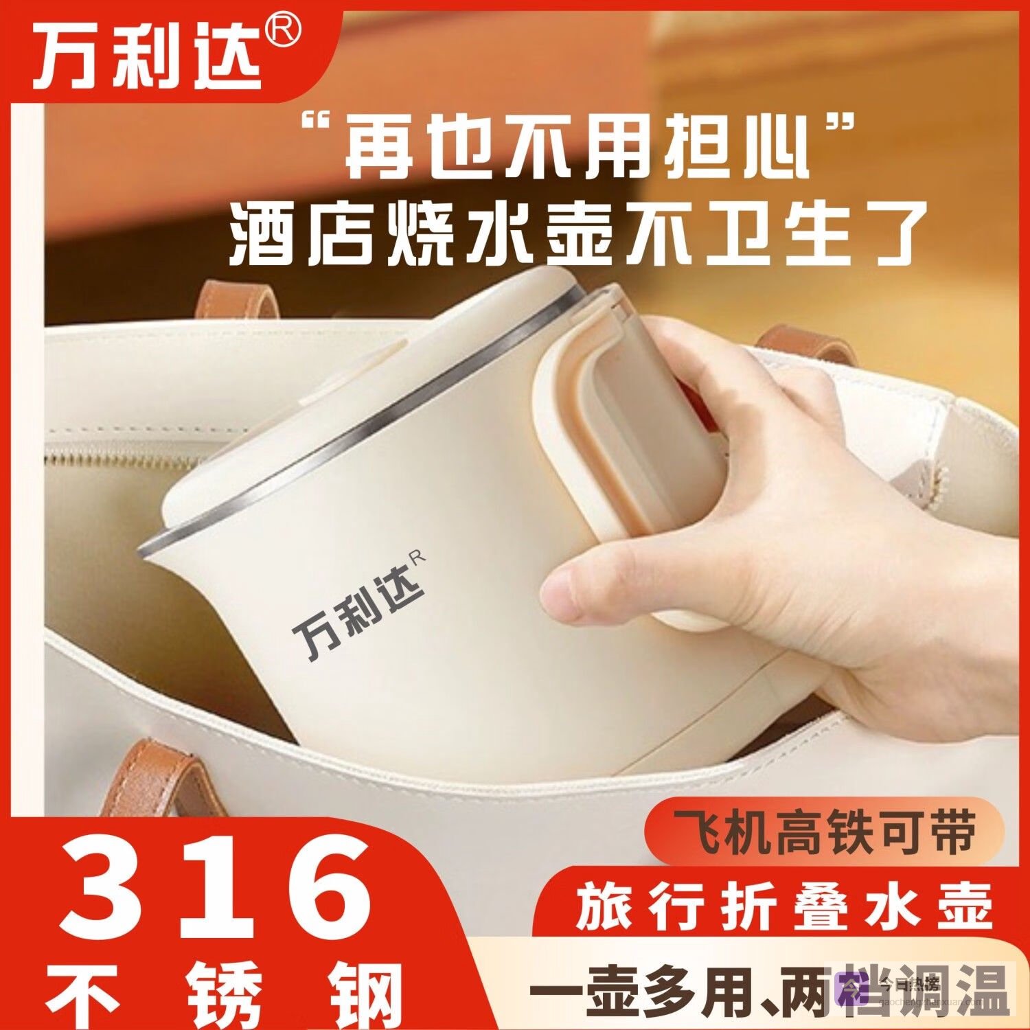 万利达电水壶宿舍露营折叠烧水壶旅行316不锈钢保温电热水壶便携式热水壶办公室家用一体无缝恒温 0.8L 【316不锈钢】无缝内胆¥
