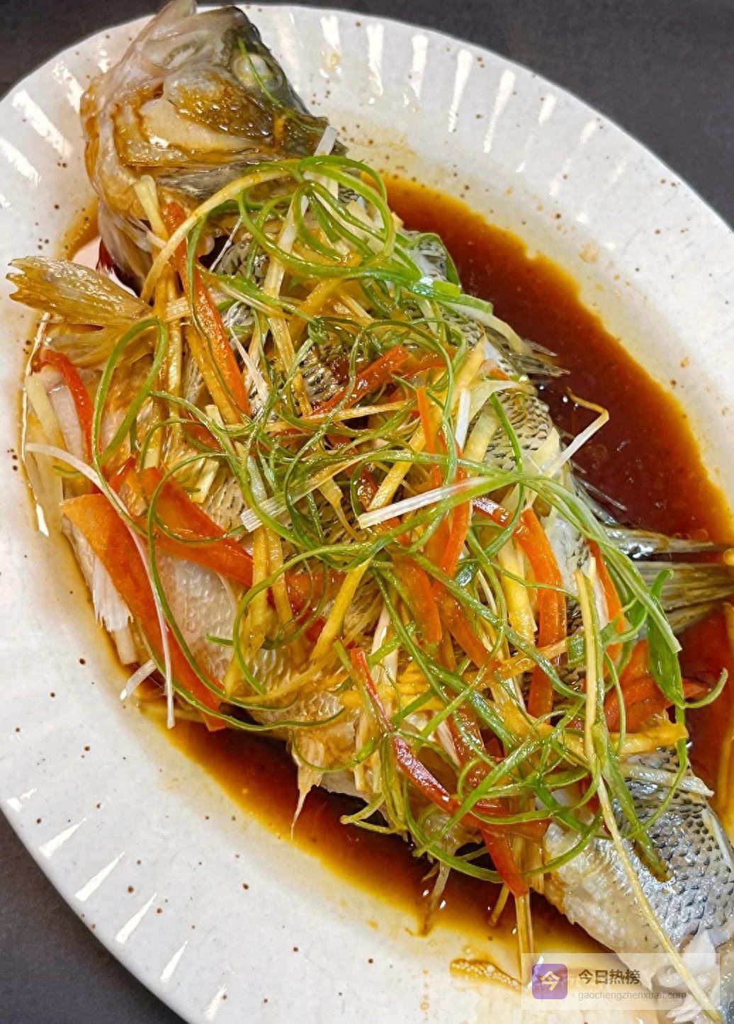 泼——倒掉腥汁,铺葱姜丝,热油烧到冒烟,“刺啦”一声泼上去,再淋蒸鱼豉油。