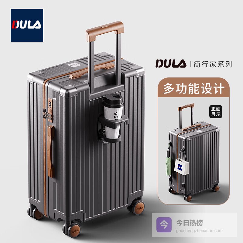 【京东自营】DULA行李箱高颜值带杯架多功能男拉杆箱女旅行箱密码箱子飒灰棕26英寸¥