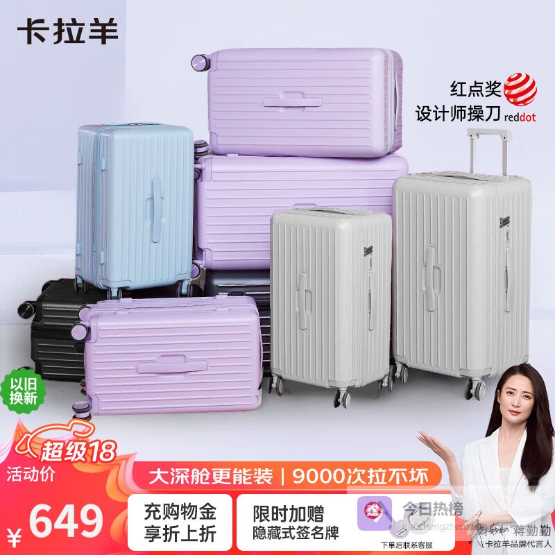 卡拉羊专注于年轻市场,将活力与创意注入每一款行李箱产品。品牌恪守舒适与实用原则,开发出色彩丰富、设计独特的旅行箱,适应各类户外场景。它不仅是旅行的工具,更是年轻人表达自我的方式,增添旅行趣味。