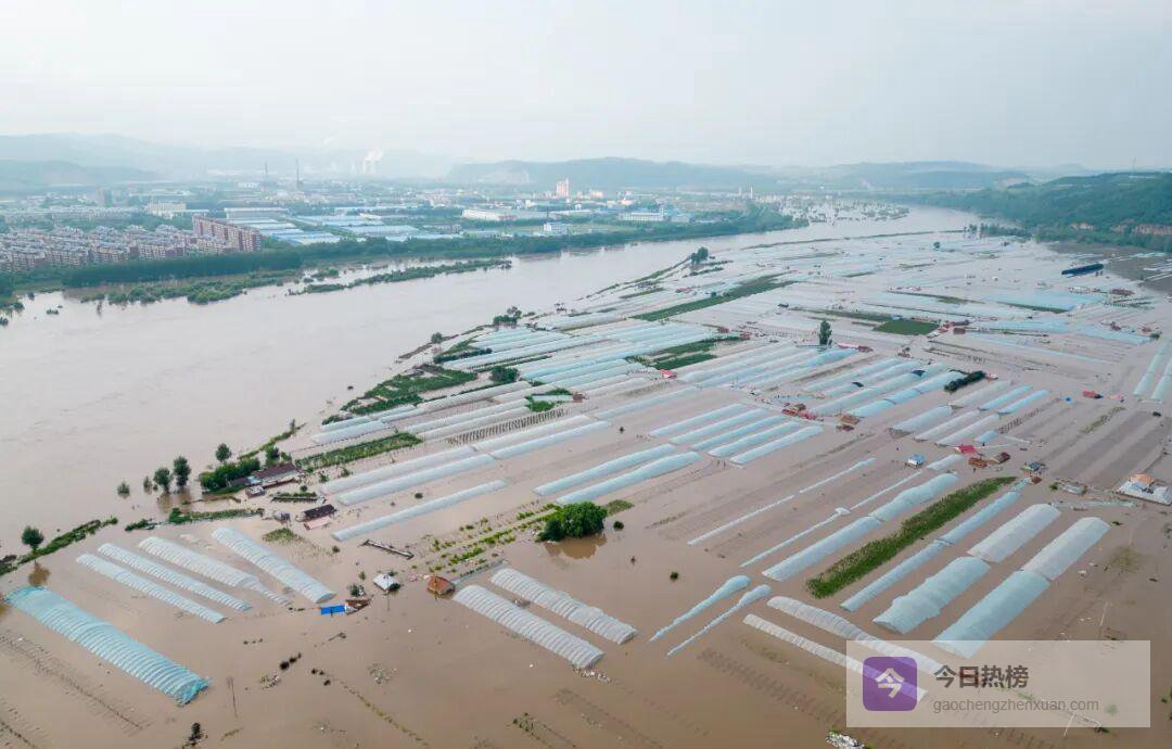 这是8月4日拍摄的黑龙江省牡丹江市铁岭河牡丹江公路大桥段被淹的房屋和大棚(无人机照片)。