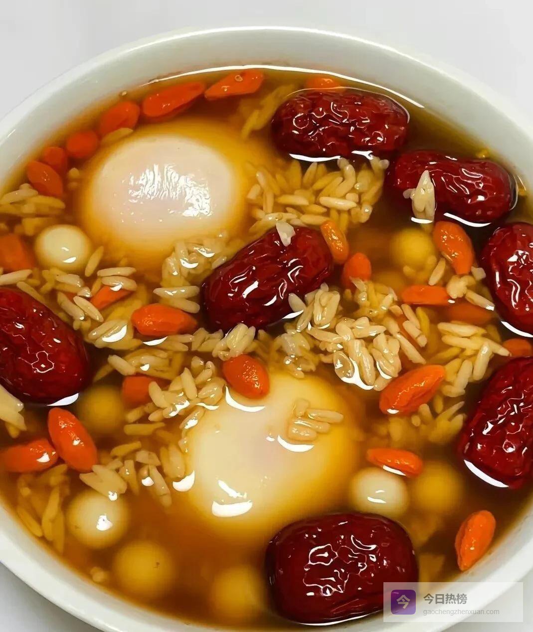 除了直接喝,酒酿鸡蛋还可以和其他食材搭配。比如加牛奶,做成酒酿鸡蛋炖奶,口感更醇厚,补钙效果更好。加燕麦,增加膳食纤维,适合减肥的姐妹。加苹果丁,果香和酒香融合,味道更有层次。冬天可以喝热的,暖身驱寒;夏天可以放凉了喝,解暑开胃。