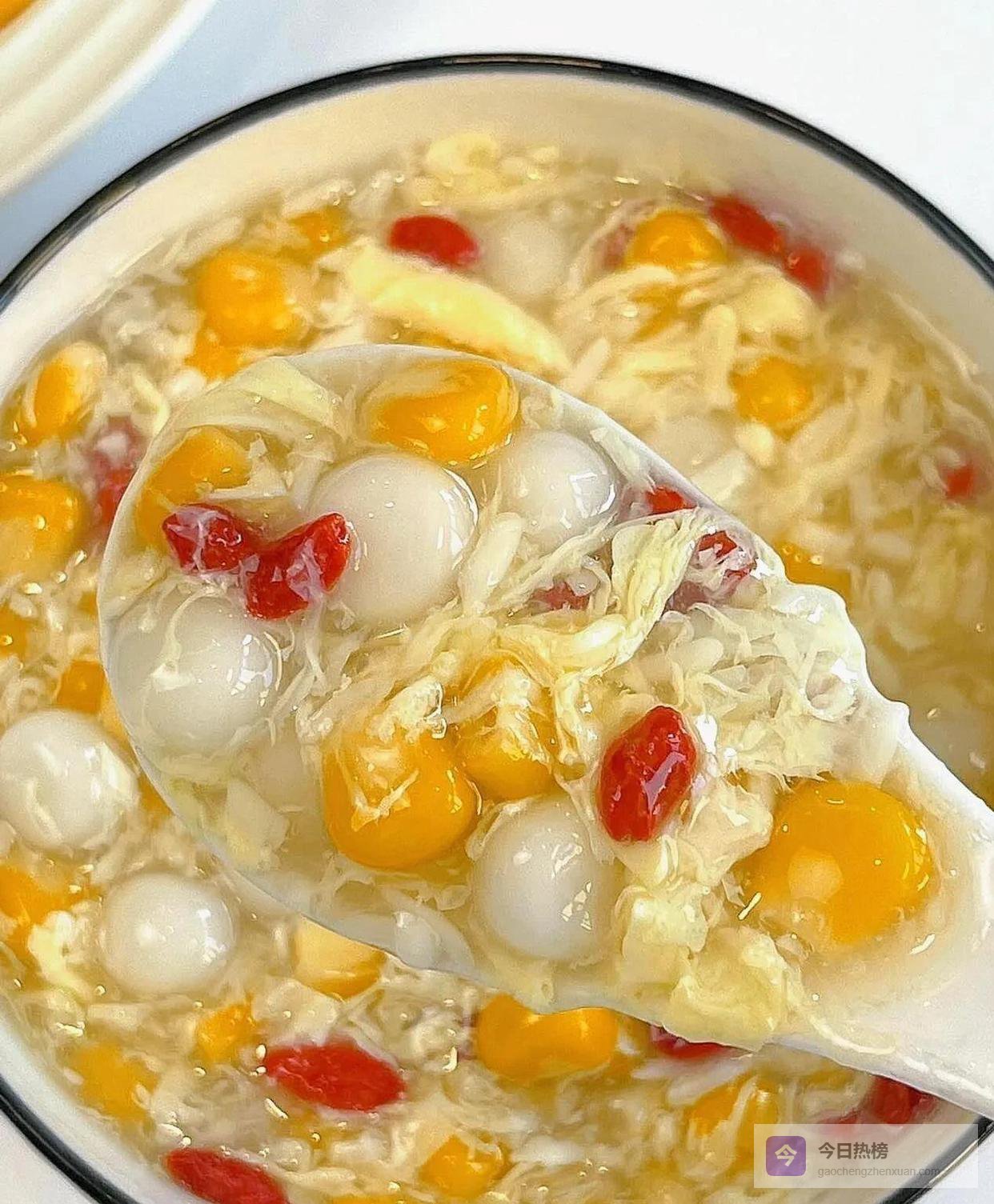 想要变化口味的,可以试试这几个升级版做法。第一个是红糖生姜酒酿鸡蛋:水里先放几片生姜和红糖煮开,再打鸡蛋,最后加酒酿。这个特别适合经期喝,暖宫效果加倍。第二个是枸杞酒酿鸡蛋圆子:先煮小汤圆,等汤圆浮起来了,加酒酿,再淋入蛋液,最后撒枸杞。这个可以当早餐,饱腹又营养。第三个是玉米酒酿蛋花羹:玉米粒加水煮开,加水淀粉勾芡,淋入蛋液,最后加酒酿。这个口感更丰富,玉米的膳食纤维还能促进肠道蠕动。