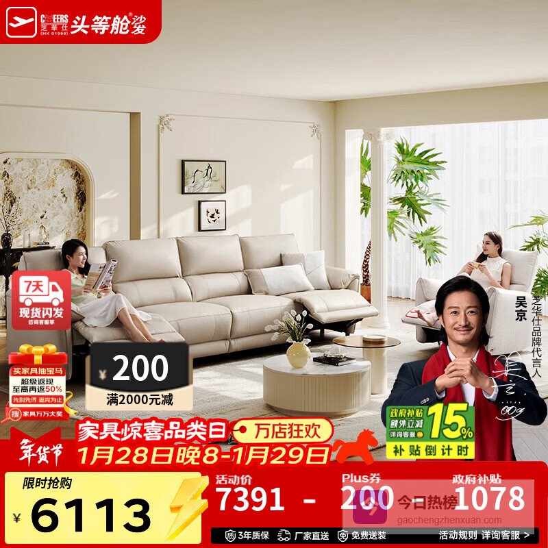 【京东自营】芝华仕头等舱大象耳朵30665猫抓布艺电动沙发白2.76m小户型直排沙发客厅¥