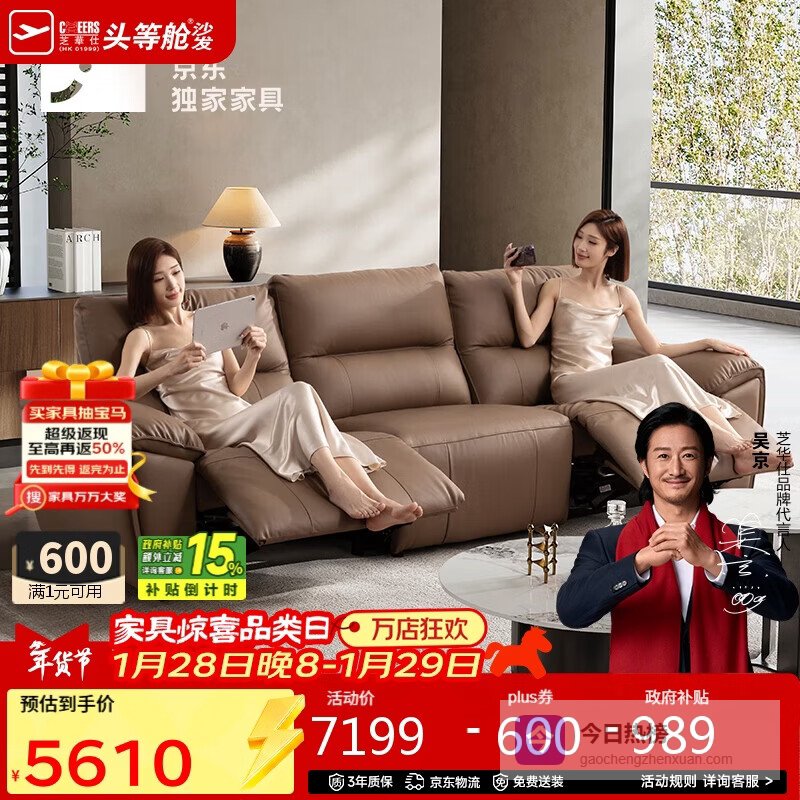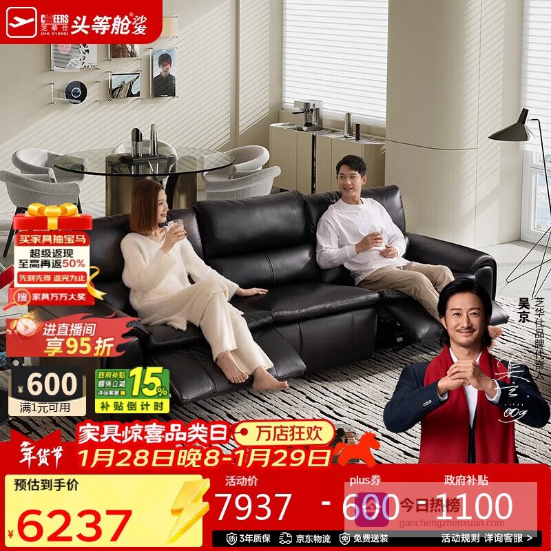 【京东自营】芝华仕头等舱双重奏30669真皮零靠墙双层座包电动沙发黑2.81m沙发客厅¥