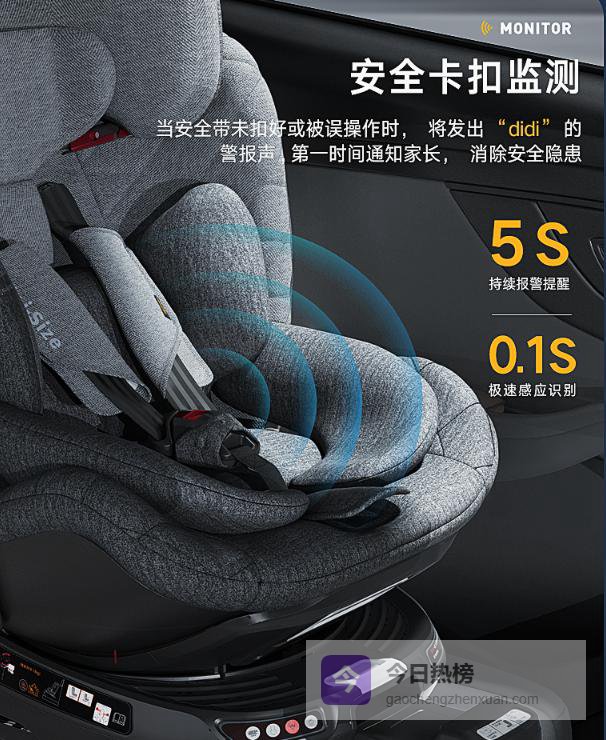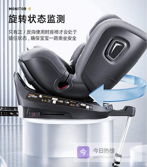 1️⃣儿童安全驻车设计:具备I-Size认证和四大智能监测系统,让每次出行都保障孩子的高度安全。搭配360度自由旋转功能,轻松适应不同的乘车需求,确保家长在任何角度都能便捷放入和取出宝宝。