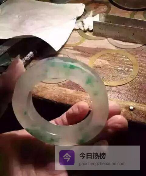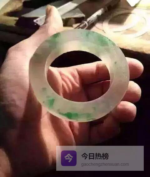 套镯、打磨、冲水……每一步都像在给翡翠“化妆”。刚脱模的粗胚还没抛光,玻璃光泽已经呼之欲出;再细看,刚性十足,冰味儿直冒,绿花像活的一样在飘。