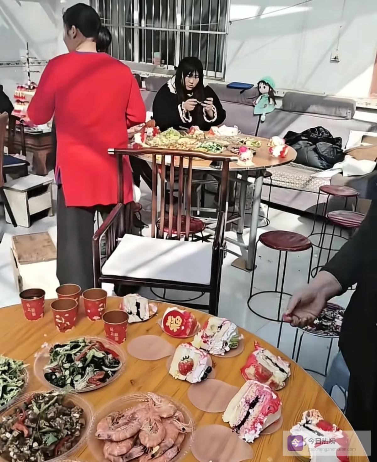 酒席摆得满满当当,大虾、农家菜……吃得就是个新鲜和热闹。切下来的蛋糕块头那叫一个实在,一看就是自家人的做派,不搞那些虚头巴脑的。