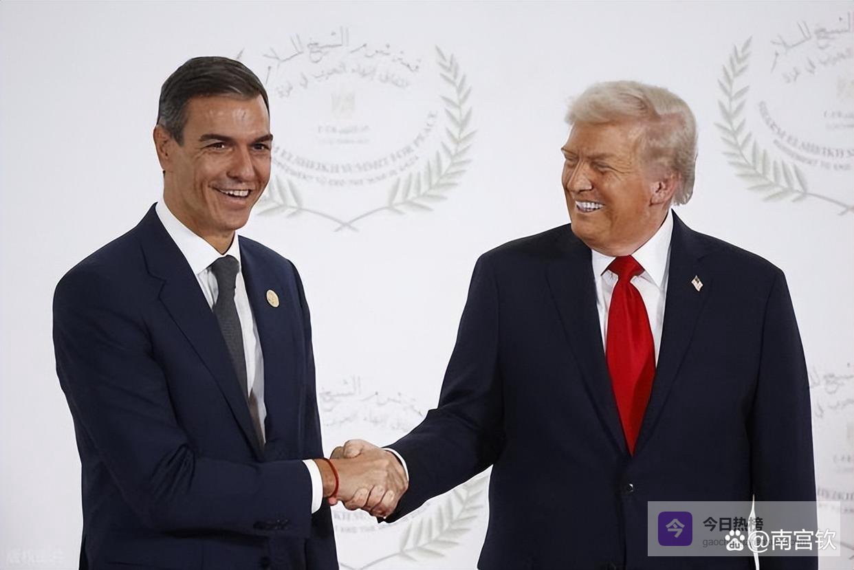 2025年10月9日,特朗普在白宫会见芬兰总统亚历山大·斯图布,公开称西班牙为落后者,建议北约考虑排除它。特朗普要求欧洲领导人联系马德里,质问拒绝新目标的原因。