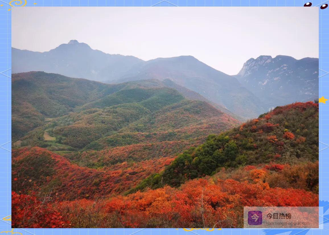 最佳观赏带集中在少室山三皇寨—五乳峰—五花坪一线,从少林寺前一路蜿蜒到山顶,俯瞰古刹金顶,别有一番“禅意枫景”。