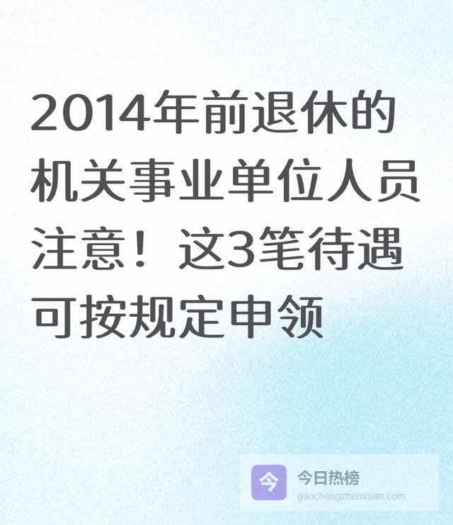 机关事业单位养老保险制度改革后,此前办理退休手续的人员,一直按照“老人老办法”享受保障,待遇稳定、保障有力。很多符合条件的朋友,不清楚自己还能按规定申领相关待遇,要么漏办、要么错办,白白错过应享权益。今天用直白易懂的话,把可申领的三类待遇、认定条件、办理方式讲清楚,不夸大、不误导、不涉及敏感内容,只传递真实合规的政策信息,帮大家把该享的保障落实到位。