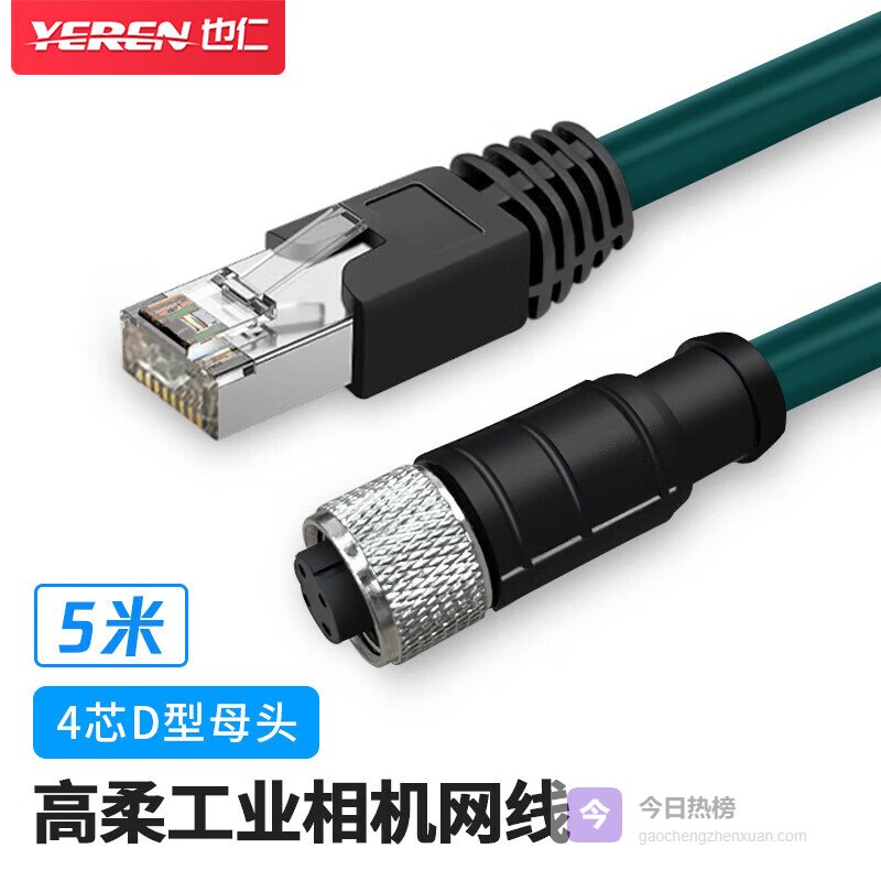 【京东自营】也仁M12转RJ45编码线传感器线缆工业相机高柔屏蔽拖链耐磨耐折弯康耐视网线4芯D型母头¥