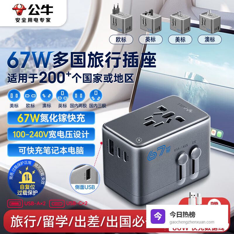 出国旅行充电不求人,这些公牛转换插头真香!全球插头标准五花八门,带错一个就抓瞎?这几款公牛转换插头,稳充快充还防脱落,旅行党闭眼入。
