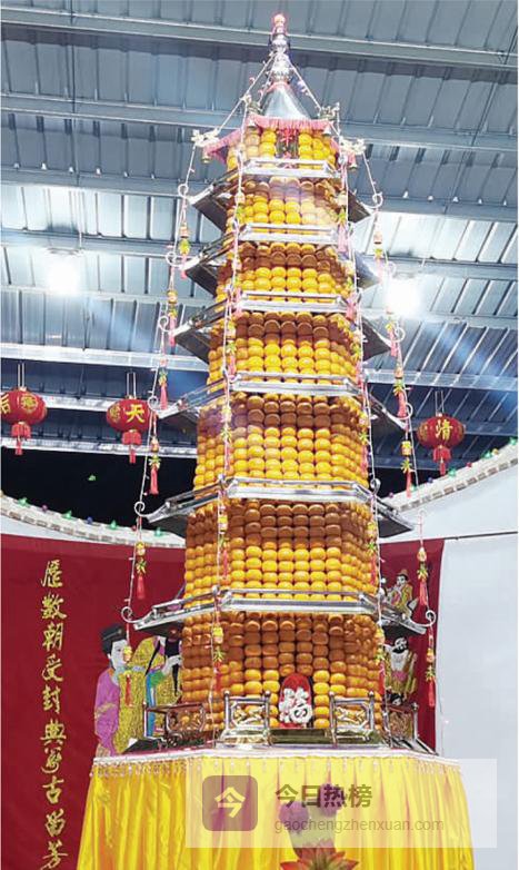 夜色最浓时,所有目光被戏台中央那座近六米高的红桔塔牢牢吸住。六角铁架外包红桔,层层收分,塔尖悬五色彩灯,像给夜空点亮一枚巨大的“吉祥”字。400千克红桔、两天两夜、1529颗大小匀称的“选美”桔子——这是塔的数字密码,也是几百年来妈祖信众对“红红火火”最执拗的注解。