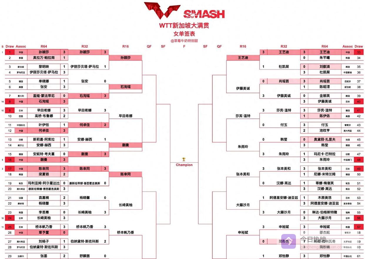 2026年WTT新加坡大满贯赛进入正赛第五天,单打16强已全部产生。 国乒在单打赛场表现强势,男单王楚钦、林诗栋、向鹏、陈垣宇四人晋级,女单孙颖莎、王曼昱、陈幸同、王艺迪、蒯曼、陈熠、石洵瑶七人闯入下一轮,合计占据16强中的11个席位。 日本队紧随其后,共有8人晋级。 双打方面,国乒男双林诗栋/黄友政、女双蒯曼/陈熠均闯入四强,但混双组合黄友政/陈熠已止步八强,这意味着国乒提前无缘本站赛事的混双冠军。