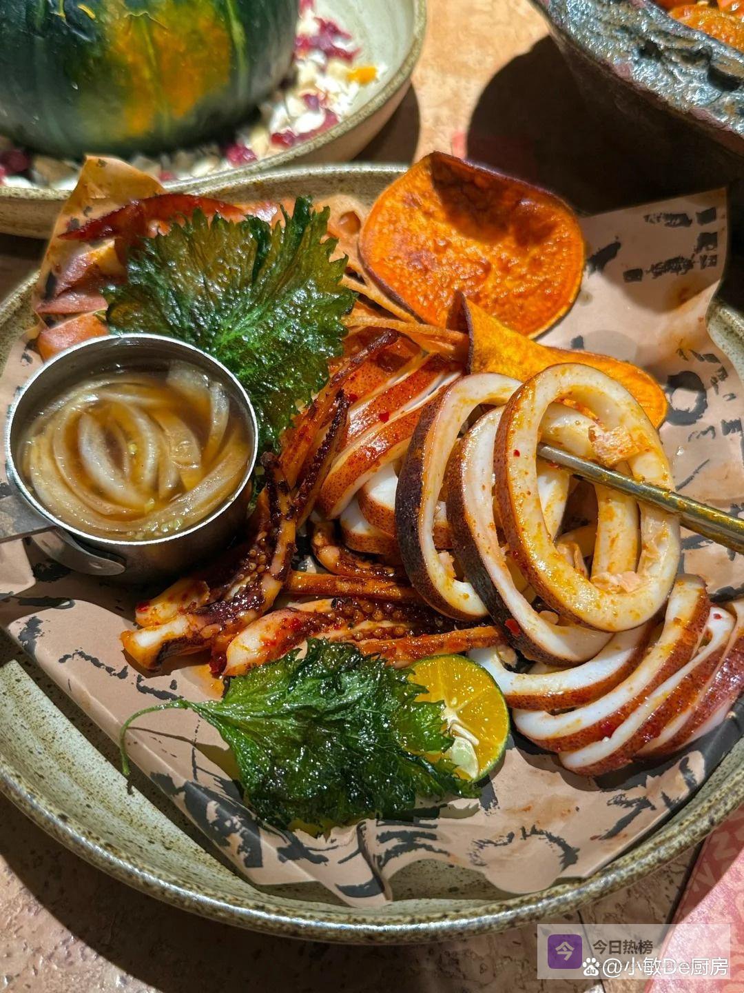 烤鱿鱼处理得干净新鲜,火候掌握得不错,口感弹韧又不会难嚼。点睛之笔是那碟浅绿色的芥末汁,不是那种直冲脑门的刺激,而是带着清香,非常提鲜又解腻,和鱿鱼特别搭,吃着感觉整个嘴巴都清爽了。